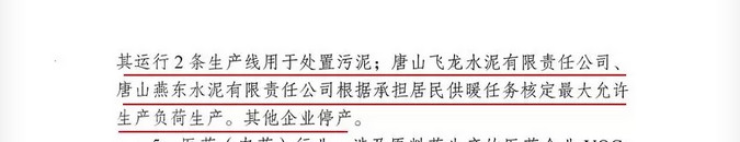 其中,豐潤區(qū)冀東水泥有限公司唐山分公司、灤州市冀東水泥有限公司灤縣分公司、灤南縣耀東水泥、古冶區(qū)冀東啟新水泥按照核定處置污染的最低負荷生產(chǎn)。