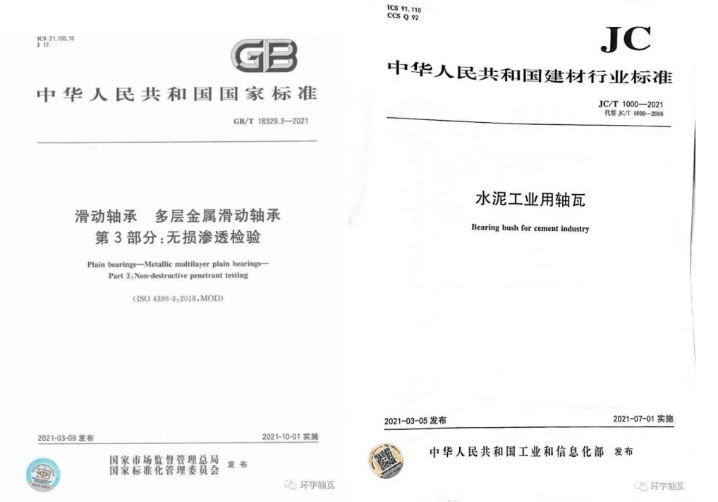 目前,由環(huán)宇軸瓦參與制定的三項(xiàng)滑動軸承國家標(biāo)準(zhǔn)已發(fā)布: